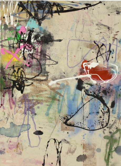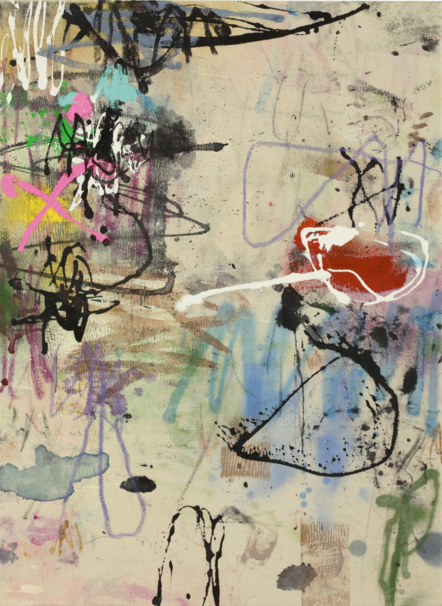組み合わせた鮮やかな色彩と縦横自在の描線からなる抽象的な