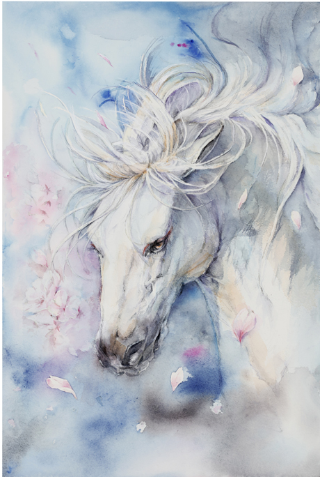 馬をテーマに、水彩で描く流麗な世界観が多くのファンを持つ女流画家 BASEショップ https://mocona522.theshop.jp/